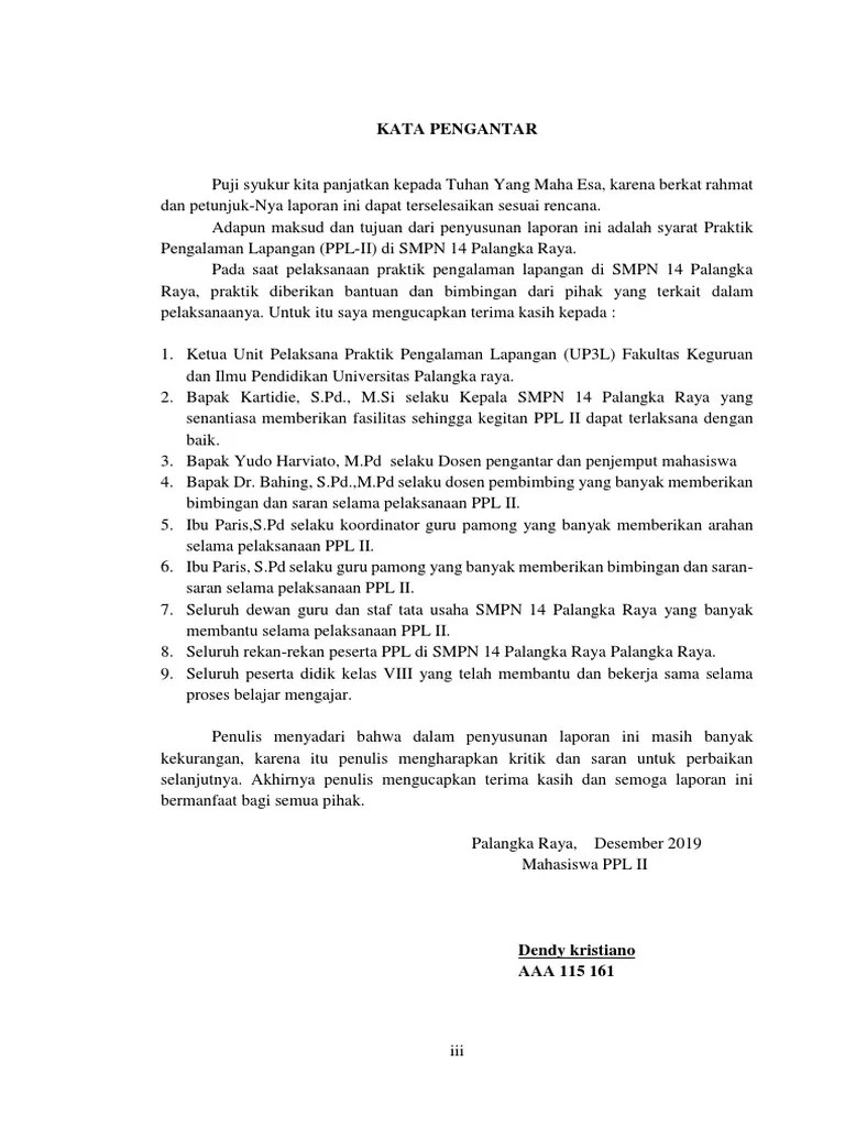 Kata Pengantar Laporan Ppl / Kata Pengantar Laporan - Laporan ppl merupakan salah satu rangkaian terpenting setelah mahasiswa mengikuti kegiatan ppl, karena mereka dituntut untuk.. Laporan ppl merupakan salah satu rangkaian terpenting setelah mahasiswa mengikuti kegiatan ppl, karena mereka dituntut untuk. Nya sehingga penyusunan pedoman umum laporan praktik pengalaman . Contoh kata pengantar laporan ppl pgsd unnes. Laporan ini merupakan syarat untuk menyelesaikan mata kuliah ppl mahasiswa fakultas keguruan dan ilmu pendidikan jurusan matematika, universitas . Jika pelaksanaan ppl dan atau laporan ppl belum selesai di.
